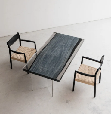 木目だけのテーブルの他、樹脂と合わせた商品もCAGUUUでは多く紹介しています。1枚板のテーブルは大きく、空間が狭く感じてしまうこともありますが、例えば透明の樹脂との融合によるテーブルだと、圧迫感も軽減され、より高級感のあるテーブルとしてもお使いいただけそうです。