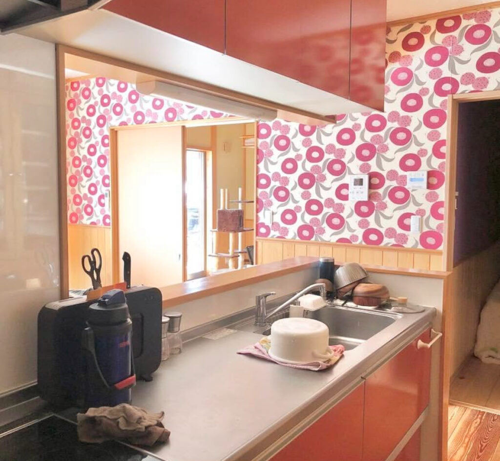 クロス・・・最初はリビングのクロスの柄にびっくりし、貼り替えようと思っていましたが、意外に住んでみると見慣れて平気になりました。